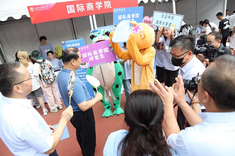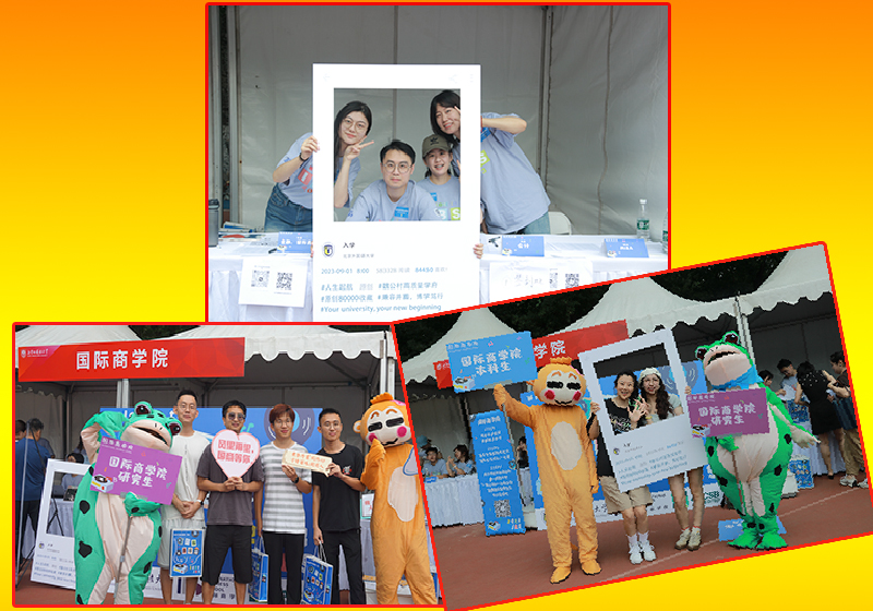 上午9时,太阳集团网站8722迎来了第一批2023级新生同学,工作人员各司其职,细致耐心地为新生们进行报到手续引导、答疑解惑;活泼可爱的玩偶与新生们进行热情互动,并邀请大家合影留念,留存下作为北外国商新生的第一张照片。