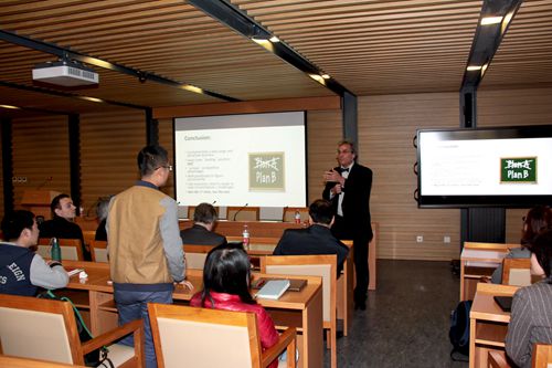 布雷丁先生以“创新的国度:银行中心瑞士的成功故事”为题,讲述了瑞士银行和金融业的发展历程,并分享瑞士经历两次世界大战,数次经济危机,多次产业转型而维持经济强势的秘诀,从而分析瑞士这个欧洲小国是如何成为全球最具创新,最有竞争力的国家。
