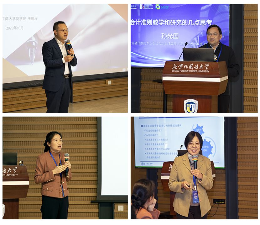主旨演讲环节,企业会计准则专业委员会主任委员、北京工商大学商学院王鹏程教授作了题为《数智化时代会计基础理论创新》的主旨演讲,他结合数字化时代背景和中国应用场景,对会计本质重新定位、会计信息内涵拓展、会计基本目标深化、会计基本假设修正、会计职能拓展创新、会计组织方式变革进行了详细阐述。企业会计准则专业委员会副主任委员、沈阳农业大学副校长孙光国教授作了题为《会计准则教学和研究的几点思考》的主旨演讲,他从理论教学和案例教学两个维度分析了准则教学的难点,包括以事实为基础还是以预测为基础、程序(过程)公允还是纯粹(结果)公允、职业判断还是盈余管理等问题,并以其他综合收益列报、研发支出列报、问询函监管为例分析了会计准则的经济后果研究。中国会计学会企业会计准则专业委员会委员、暨南大学管理学院曾亚敏教授作了题为《可持续发展报告与财务报表的信息关联》的主旨演讲,她分析了报告边界的形成原因与问题,围绕信息关联的基本概念、具体要求、实现方式、重要意义等方面进行了分享。中国会计学会企业会计准则专业委员会委员、太阳集团网站8722宋衍蘅教授作了题为《从财务数据到企业价值创造:管理层评论的演进与影响》的主旨演讲,她结合案例分析了传统管理层评论的主要痛点,包括没有提供投资者最关心的价值创造逻辑,出现了内容碎片化、信息模版化等问题。在此基础上,她分析了2025年IFRS PS1的重大改进及其可能影响,并讨论了其在中国应用可能出现的问题和挑战。