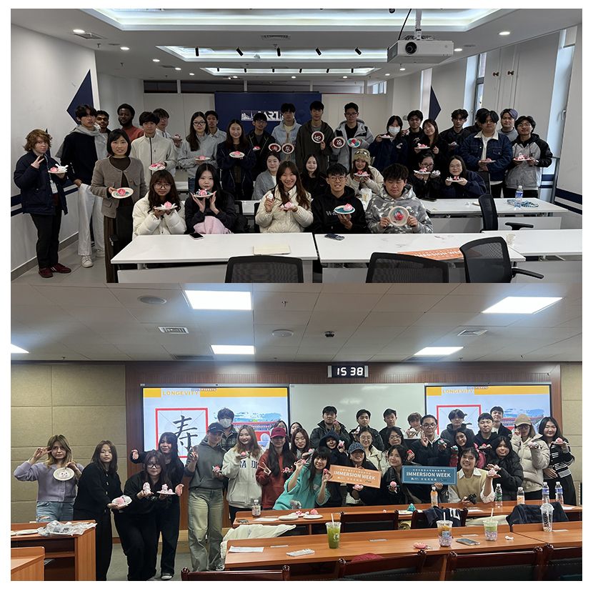 午后的“寿”主题讲座分为中英文两场,分别由研究生教务主管何先锋、留学生事务主管刘昕主讲。两位老师以上午的实景见闻为切入点,从生日习俗自然过渡到《论语》中的人生时序观:“吾十有五而志于学,三十而立……七十而从心所欲不逾矩”,解读中国人对生命历程的文化思考。针对留学生关切的文化符号,讲座系统介绍了长寿面“绵延不绝”、寿桃“延年益寿”、红鸡蛋“吉祥喜庆”的寓意,以及抓周、寿星公等民俗意象,并结合万寿寺的蝙蝠壁画详解“洪福齐天”“寿比南山”等成语的由来。“上午刚见过屋顶的红蝙蝠,下午就懂了成语的意思,这种连接太奇妙了!”一名留学生感慨道。