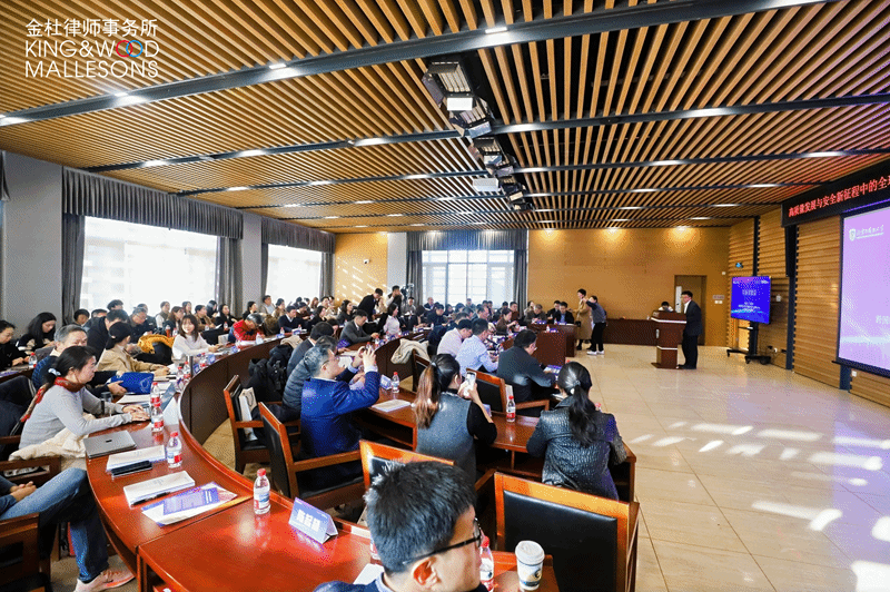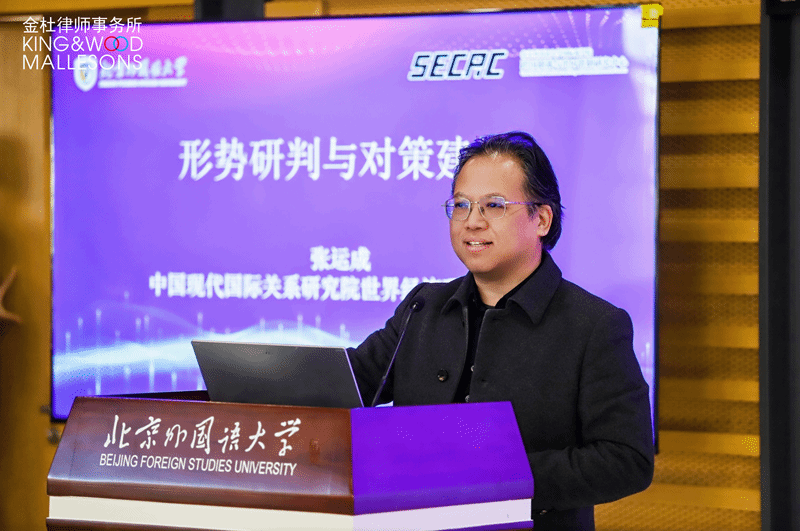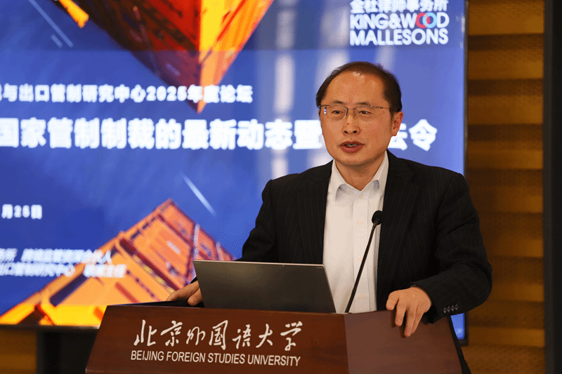 研究中心联席主任、金杜跨境监管团队牵头合伙人刘新宇围绕“主要国家管制制裁的最新动态暨相关法令”做了主题发言,研究中心副秘书长、金杜律师事务所跨境监管团队合伙人郭欢围绕“企业‘走出去’面临的国际形势及风险应对”做了主题分享,并分别就管制制裁最新动态、中美加征关税变化、中国出口管制形势、企业出海风险管理与实务应对进行了深入分析。
