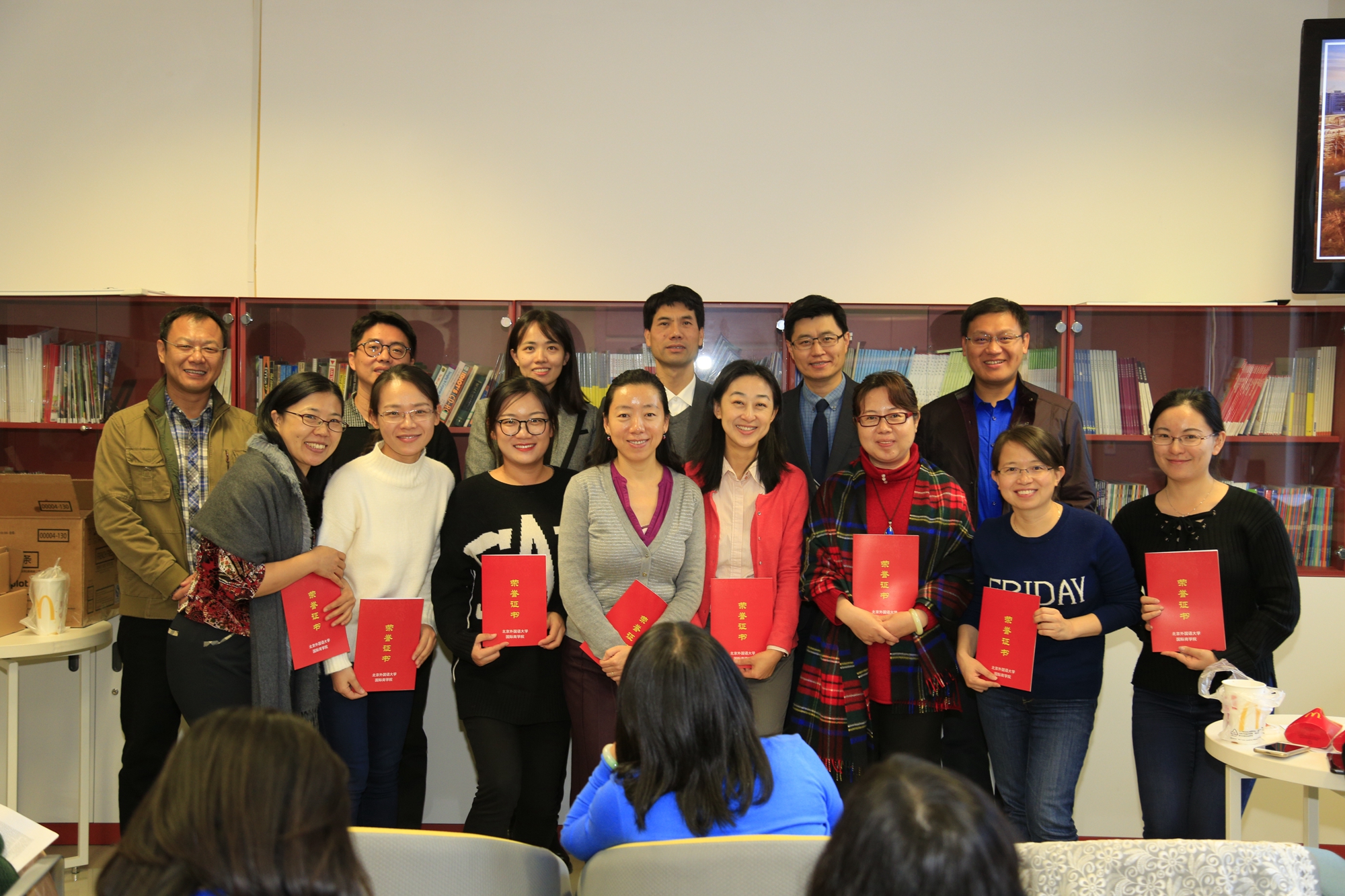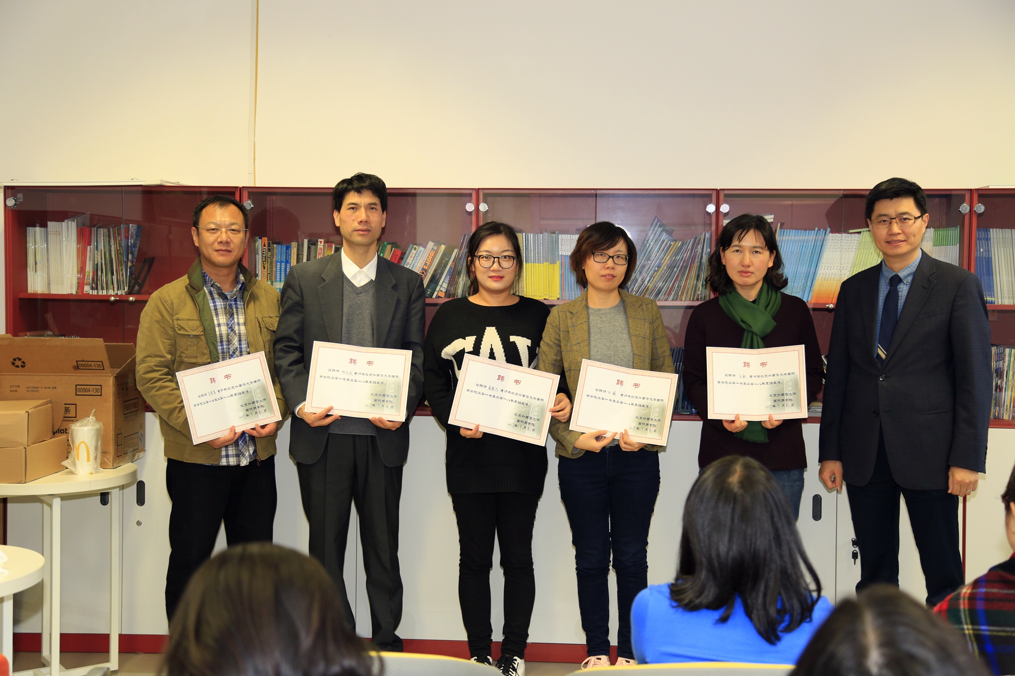 会上,刘鹏首先为上一学年获评优秀班主任称号的十九名老师颁发荣誉证书,并合影留念,全体老师向此十九位班主任表示祝贺。于石光、李倩、杨纪成、黄晓燕、范静等五名优秀班主任分别从班风建设、管理理念、个别谈话技巧、职业发展规划指导、沟通方法等角度进行了工作经验分享,此环节激发了老师们热烈的讨论与交流。之后,刘鹏向担任2017-2018学年第一学期的班主任老师颁发了聘书,并合影留念。