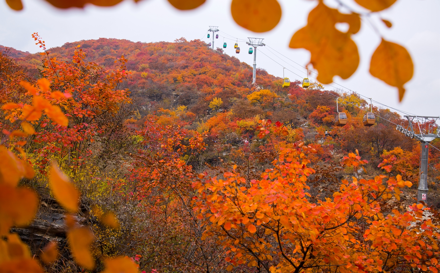 全体人员于上午8:10从东院准时出发,经过2小时车程,到达目的地。坡峰岭红叶观光区总面积约2000亩,目前正值坡峰岭红叶最佳观赏期,已经有大片红叶晕染。坡峰岭景区内山体平缓,海拔落差370米,上下山环形步道全程6千米,坡峰岭红叶观赏区的红叶品种主要有元宝枫、黄栌、火炬等多个品种。