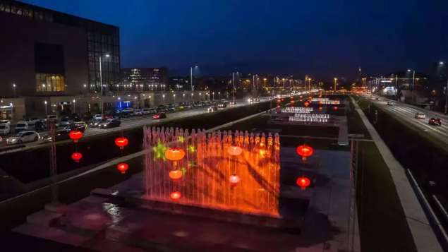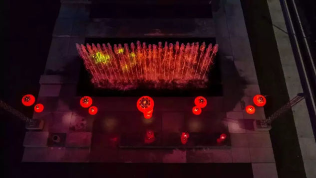 下面的两张是萨格勒布市共和国广场的喷泉水幕披上五星红旗,庆祝中国国庆。