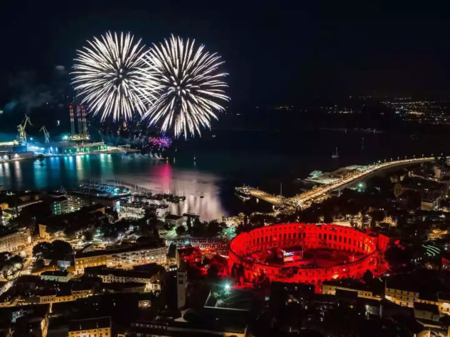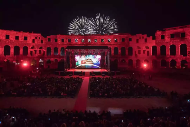这两张照片就是在克罗地亚普拉斗兽场举办的庆祝建交二十五周年“点亮中国红”活动。
