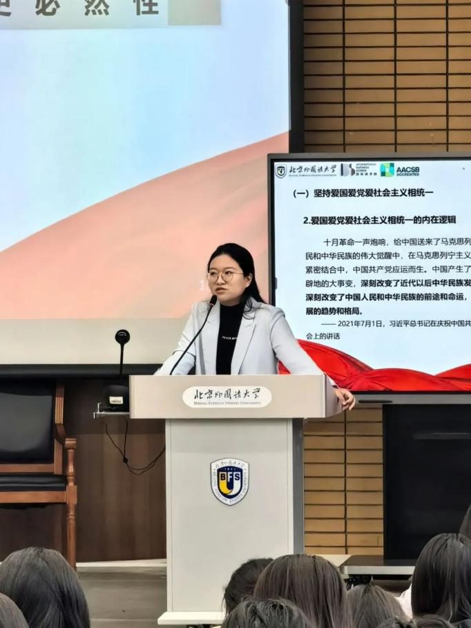 谭佳琳以《青春担当:做新时代的忠诚爱国者》为题,梳理回顾了爱国主义的认知、历史、文化和价值观四个方面,阐述了新时代青年如何践行爱国主义。