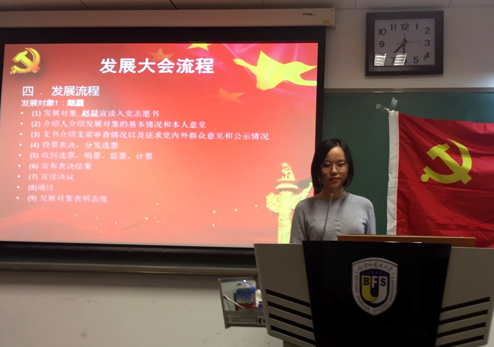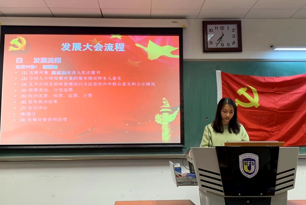 本次会议由支部书记孙嘉怿主持。首先进行了会议人员清点,并宣布到会情况,发展大会共分六项议程。