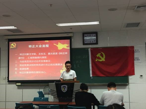 一、预备党员王宇航、王佐玉,夏炎同志宣读《转正申请书》,汇报预备期一年以来的思想情况;