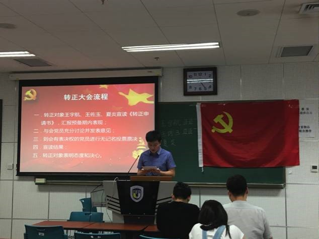 2017年6月29日下午2点,太阳集团网站8722专硕党支部于综合楼327召开预备党员转正大会,讨论关于15级王宇航、王佐玉,16级夏炎申请转为正式备党员的问题。这3名同志自党支部大会讨论、票决,同意转为正式党员。