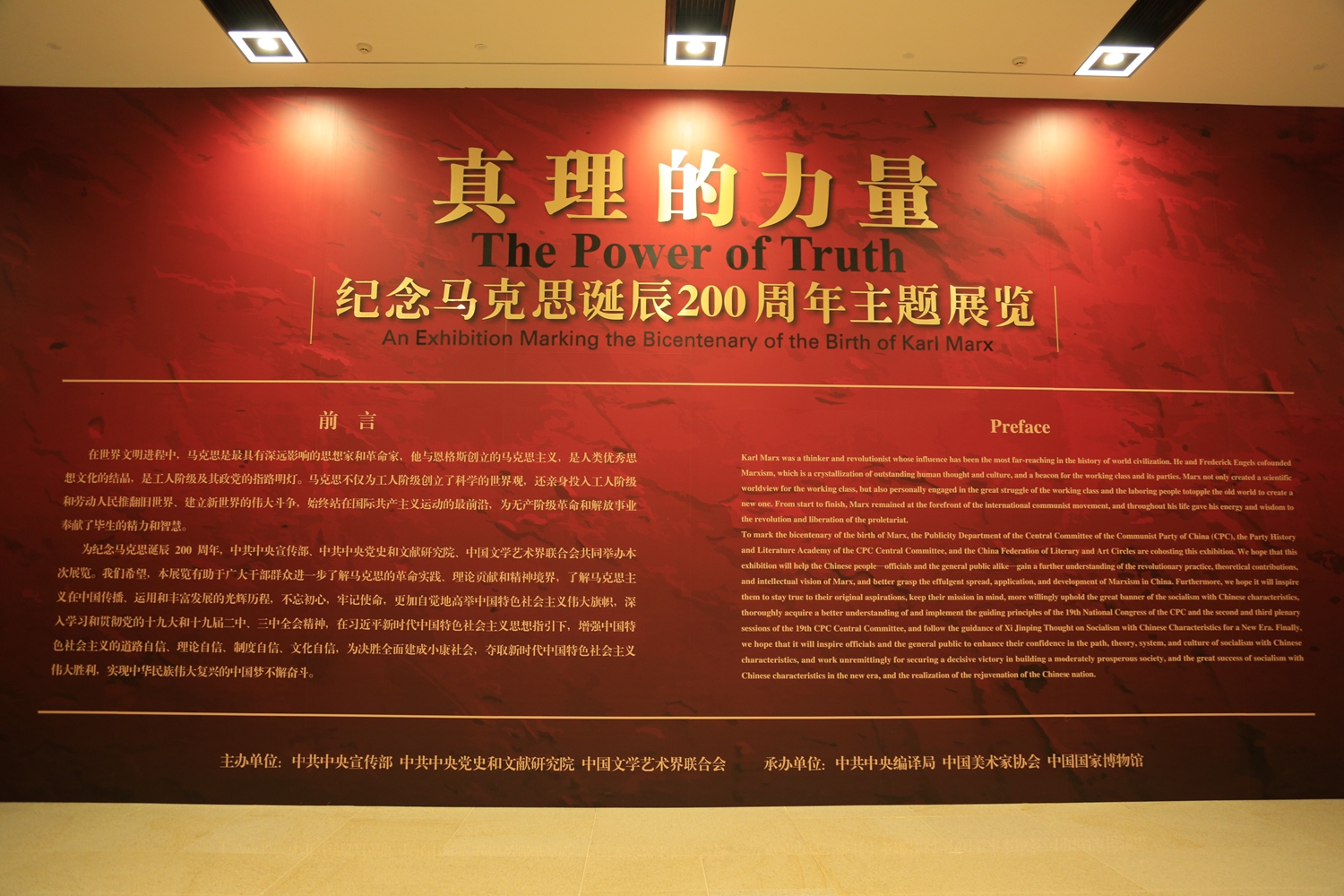 当天参观人数很多。在展厅里,大家在工作人员引导下有序参观、留影。透过展台,马克思、恩格斯、列宁手稿、笔记本及亲笔签名的书籍原版吸引众多参观者驻足,特别在由《共产党宣言》组成的巨大书墙前,不少参观者举起照相机,用镜头捕捉时空,感受马克思主义的光芒和生命力,直面“真理的力量”。 一件件珍贵物品,一幅幅生动画作……这些让观众印象深刻的作品,热情讴歌着马克思的壮丽人生,艺术再现了马克思主义诞生和传播所走过的道路。这些精心创作的美术作品为大家还原了许多珍贵的历史瞬间,加深了对马克思、对马克思主义的认识,使参观者受益匪浅。这些作品,通过感人的细节描绘,更加丰满地展现了马克思光辉而伟大的人生经历。让参观者得以更加真实地走进马克思的内心世界,更加深切地感知马克思主义所具有的穿越历史时空的真理的力量。同时,也使参观者受到一次真理的沐浴和心灵的洗礼。