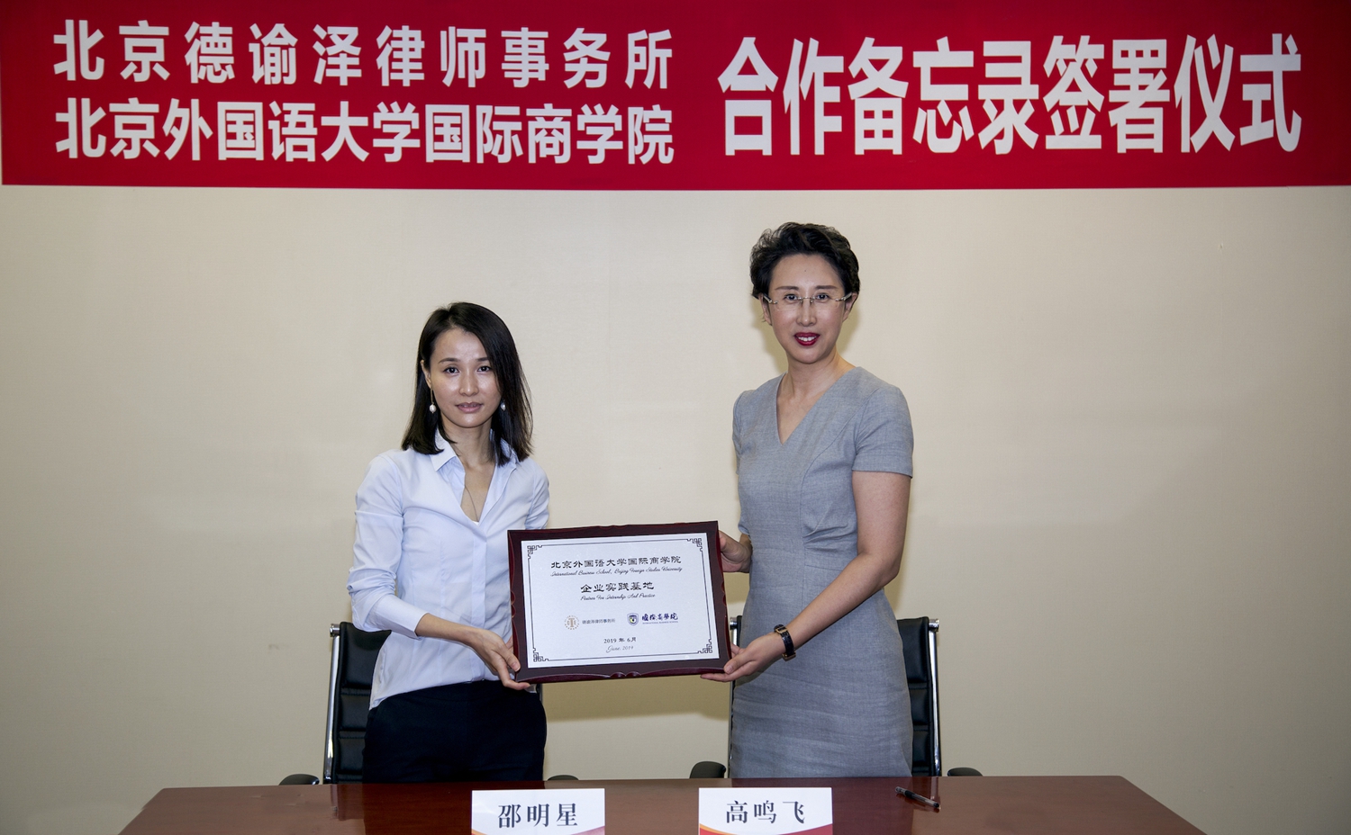 高鸣飞介绍了事务所的基本情况。她表示,德谕泽致力于为客户的家庭及其企业提供全方位风险防范为核心的法律服务,并且希望可以通过这些服务提升客户的价值,并努力建设具有未来视野的新一代律师事务所。德谕泽律师事务所希望在课程建设、学生实践、企业资源共享等方面展开切实可行的合作。