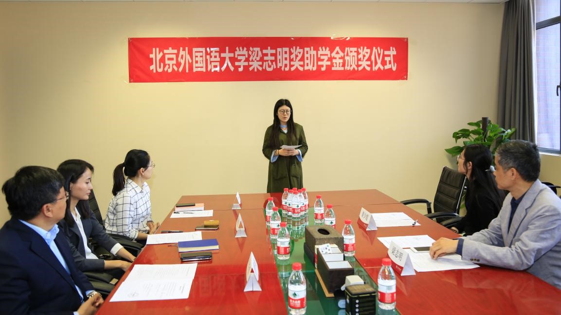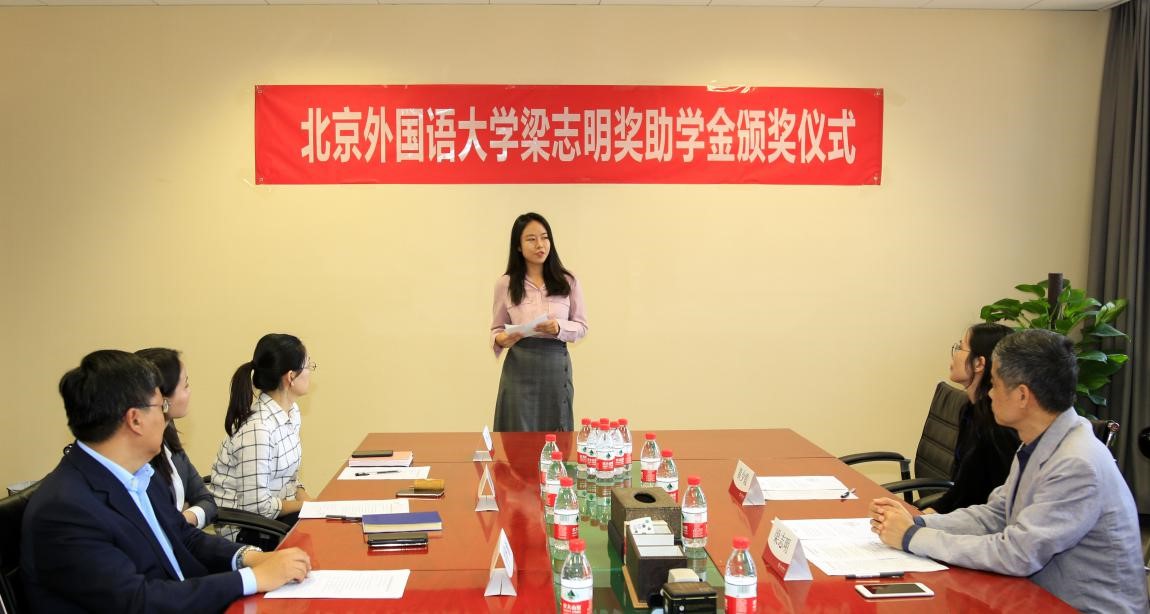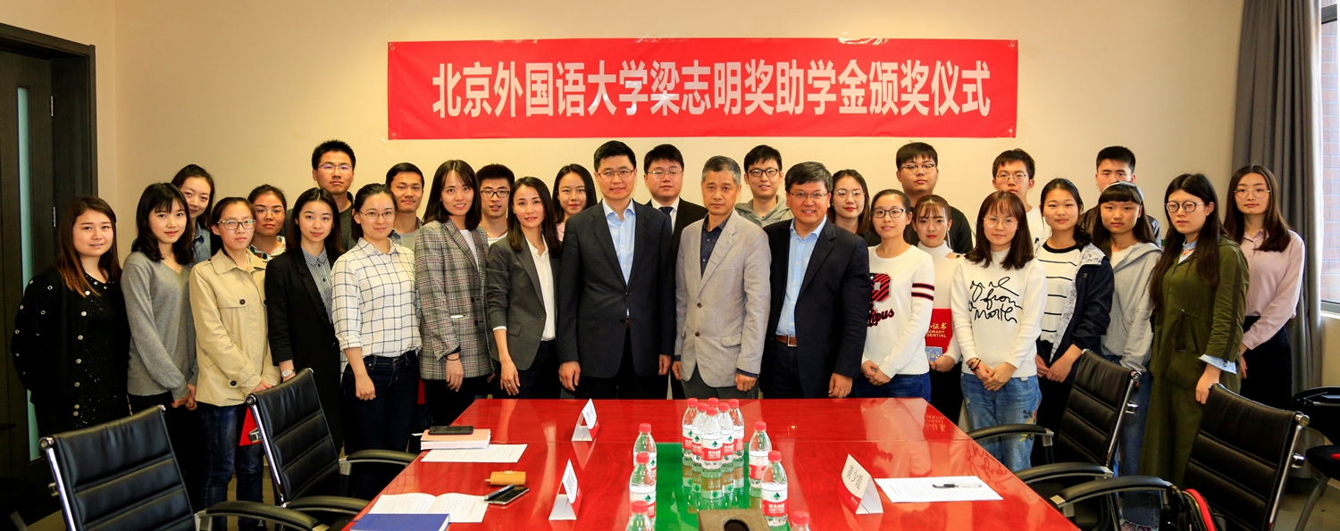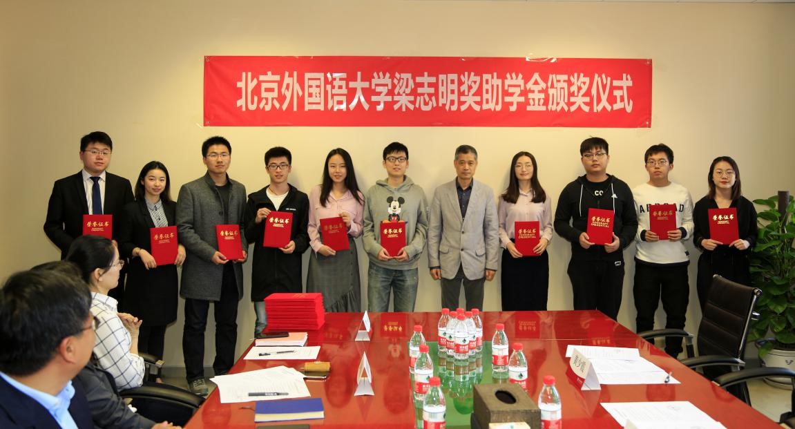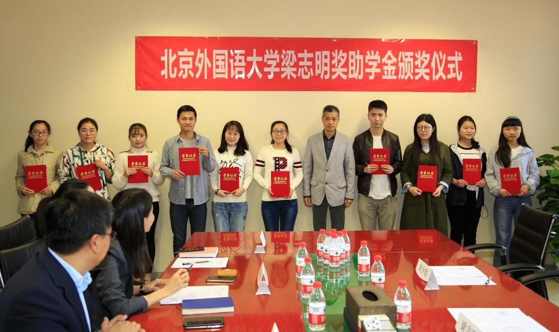 梁志明表示捐赠和设立奖学金,是对学生刻苦学习的鼓励,祝愿北外师生在学术和教学领域取得更大进步,希望获奖学生学会感恩,同时以奖学金为新的起点,鞭策自己在未来创造更好的成绩,承担更多的社会责任。并为所有获奖学生颁发了获奖证书。
