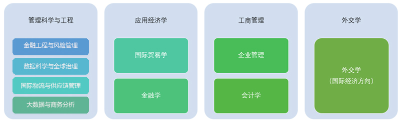 太阳集团网站8722目前拥有管理科学与工程、应用经济学、工商管理三个一级学科硕士授予权,同时招收外交学(国际经济方向)硕士专业。外交学(国际经济方向)自2007年开始招生,管理科学与工程自2012年招生,应用经济学、工商管理自2019年开始招生。